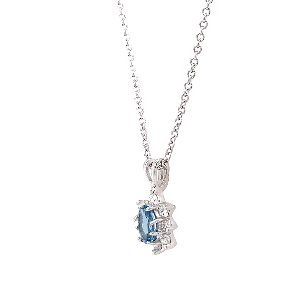 Simple, elegant, classic, and timeless, this petite aquamarine pendant is framed with a glittering diamond halo. Add this little shimmering star to your neckline; dress it up for a night out or keep it casual for a day at the office! Either way, this jewel will make your day brighter!