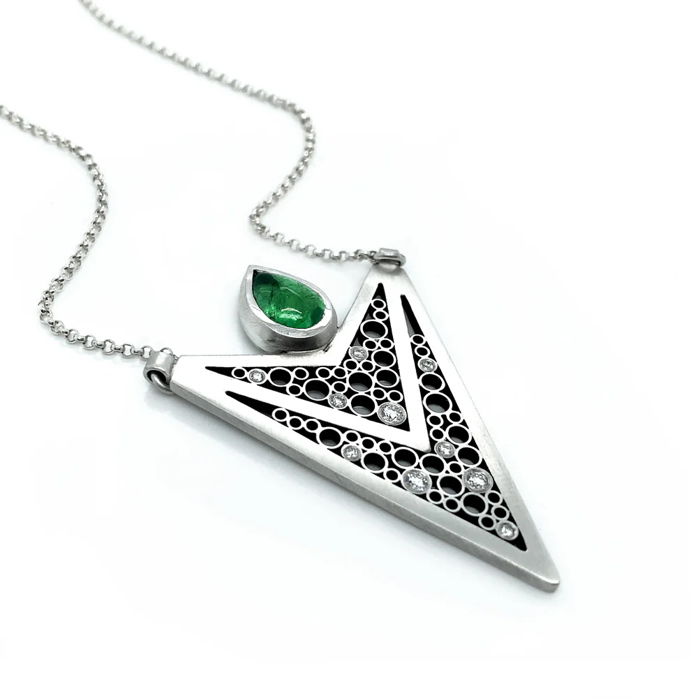 One-of-a-Kind Sterling Silver & Tsavorite Necklace - "Luz Triple V"